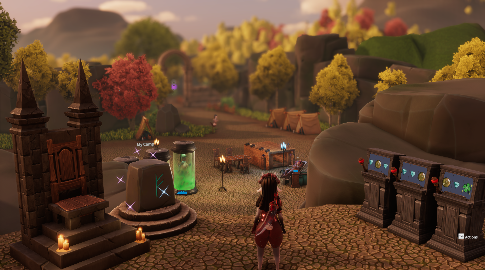 Build your settlement and permanently recruit characters from your adventures!