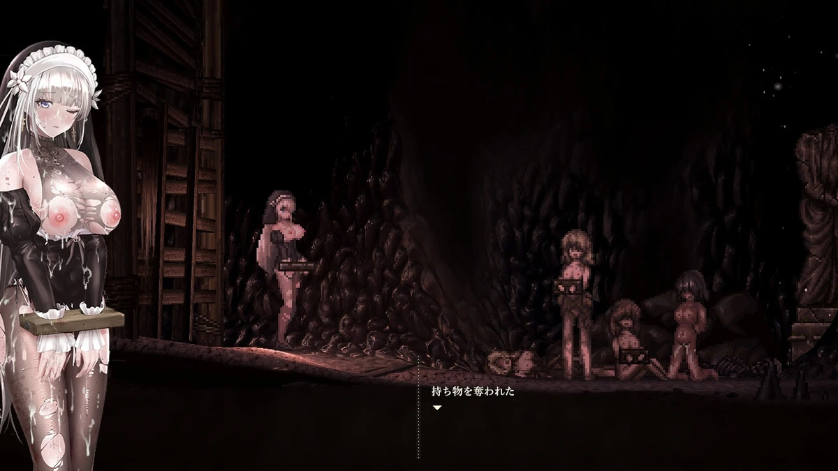 Defeat triggers erotic horror scenarios: predation, vore, non-consent violation, absorption, mental domination, breast expansion, breeding/incubation, pregnancy, monster transformation—building on the original with unique depictions, larger dot-pixel animations, detailed standing pictures/UI (including "internal" views of the heroine's state), and gallery mode.