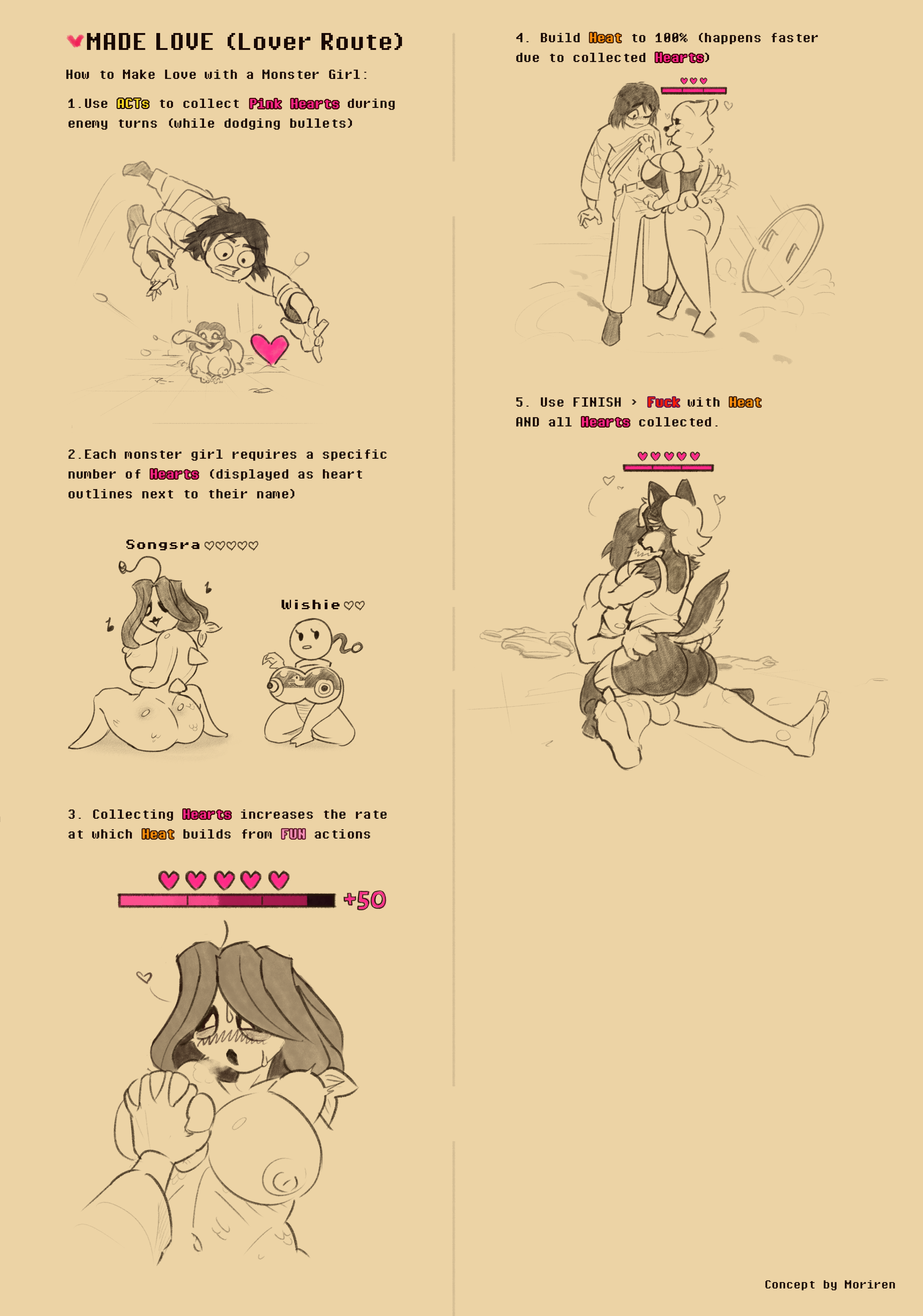 The game will follow a similar structure to Undertale, where the human falls into the Underground and travels through different areas to eventually reach the exit. However, this story will be expanded with new characters, conflicts, and sex (of course). Furthermore, there are differences between UHT:LL and Undertale/the original fan comic by TheWill.