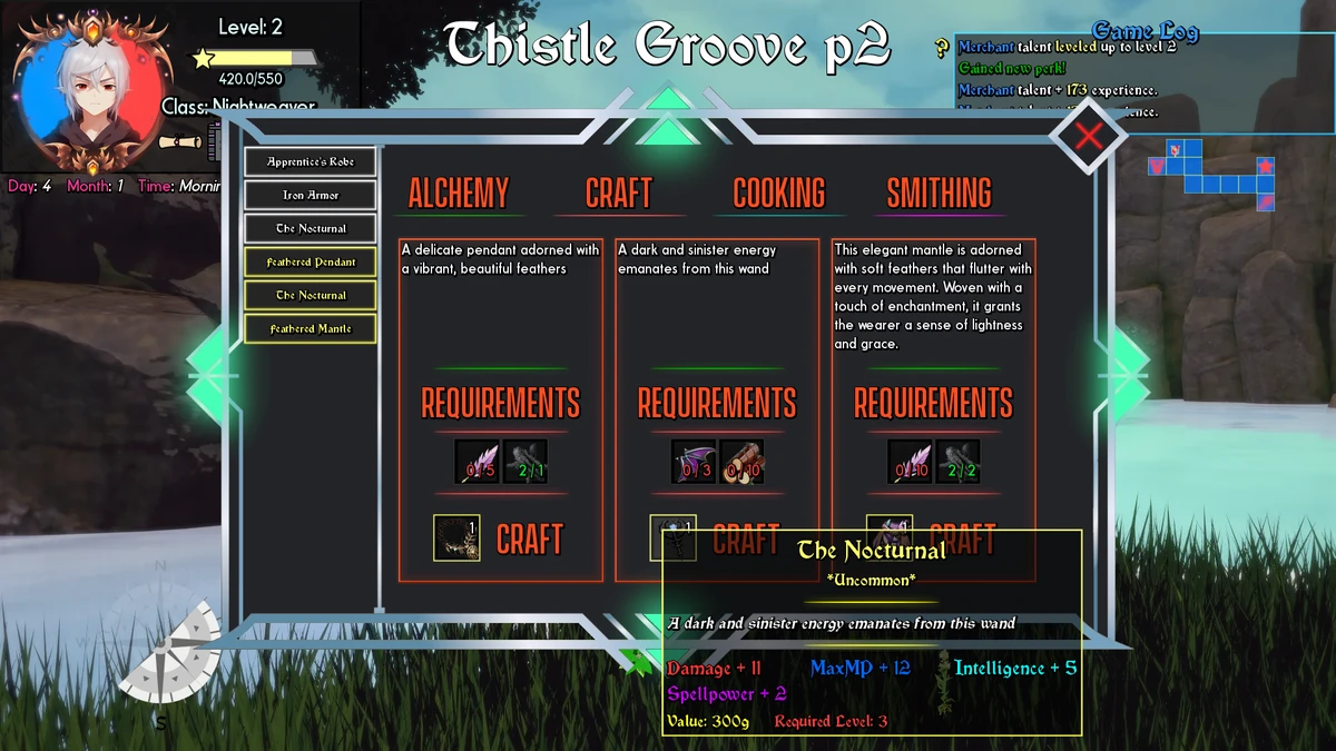 Crafting - find or purchase crafting recipes and use the resources gathered from the overworld to create new items, or improve the ones you currently have.