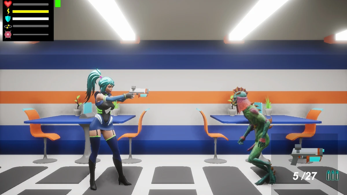 Alien Lust It is a side-shooting game where the main character is a police girl who must investigate a spaceship where she is trapped with hostile aliens.